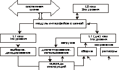 · Pentium Pro – применена технология динамического исполнения: команды декодируются 3мя декодерами на микрооперации и обрабатываются пятью модулями: 2 для работы с целыми, 2 – с плавающей точкой, 1 — интерфейс с памятью (вычисление адресов). Появился кэш 2го уровня 256 Кб. Кэш 1го уровня стал 2х входовым. Кэш 2-уровня поддерживает до 4-х адресов.