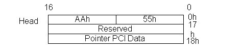 По смещения 18h содержится указатель специальной структуры данных, которая описывает идентификаторы устройства, изготовителя, длину области, длину образа, тип кода.