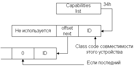 Разряд 4: Список совместимости. Означает присутствие (“1”) или отсутствие (“0”) в конфигурационном пространстве списка совместимых устройств. Если список существует, то по смещению 34h находится указатель на этот список в конфигурационной памяти логического устройства.