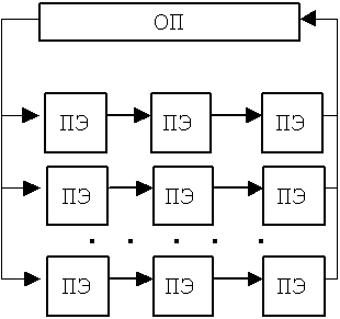 Этот принцип реализуется систолической матрицей или массивом ПЭ.