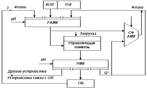 5) По окончании выполнения микрокоманды формируется состояние управляемых блоков, которые поступают на вход РАМК.