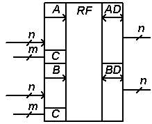 Регистровый файл может работать в двух режимах: чтения или записи, но не одновременно. Регистровый файл состоит из множества регистров (сколько регистров столько ячеек).