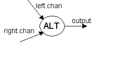 ALT конструкция означает, что войдя в тело этого процесса не ожидает готовности данных, а проверить: есть ли готовность данных – выполняется этот процесс, если нет готовности, то выполняется второй процесс.