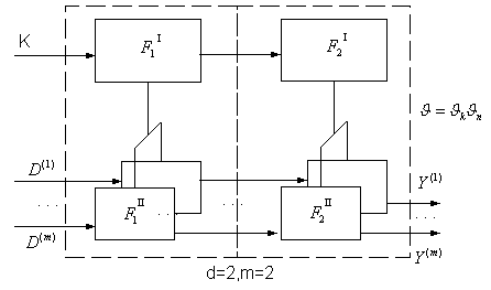, который изменяет характеристики сигналов, объединяемых пространственным мультиплексором для передачи по одному каналу. В канале смесь объединенных сигналов подвергается одной и той же обработке и на выходе получаем после их разделения пространственным демультиплексором результаты параллельной обработки во времени.