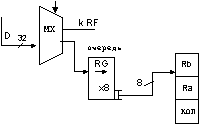 Этот демультиплексор, в зависимости от двух младших разрядов адреса, выполнит маршрутизацию с нужного места 32 слова в этот регистр команд. Возникает интересная проблема: для того чтобы выполнить 4 последовательно расположенные команды мы гарантировано 4 раза читаем из основной памяти одно и тоже слово по такой схеме. Это приводит к неэффективному использованию системного интерфейса. Поэтому для решения такой проблемы делается очередь команд, которая представляет собой сдвиговый регистр который заполняется всякий раз, когда читается полное слово из основной памяти, а потом команды побайтно сдвигаются в регистр команд.