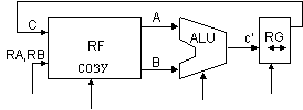 Предназначен для выполнения преобразования данных. В связи с тем, что нет в природе функционально полных систем одноместных операций, то ALU должно выполнять не только унарные, но и бинарные операции, а значит у него есть 2 входа А и В. В случае выполнения одноместной операции вход В не используется. В природе не существует функционально полных базисов, состоящих из одноместных операций, а значит устройство преобразования данных должно выполнять операции, как минимум над 2 операндами. В результате двухместной операции получается 1 результат. ALU — устройство комбинационного типа, т.е. не содержат внутренней памяти. А это значит, что они реализуют наиболее простые операции: сложение в дополнительном коде, коньюнкция, дизъюнкция, исключающее или. Никаких других операций современные ALU не выполняют, потому что сложение является единственной операцией, которое реализует функционально полную систему команд. Какой бы процессор ни взять, ни одно ALU не реализует большую систему команд. Никакие другие команды современные процессоры в рамках ALU не реализуют. Объясняется это следующим : при реализации более сложных программ количество логических элементов, которое необходимо чтобы реализовать это ALU, становиться очень большим. Поэтому реализуют малое число команд.
