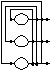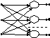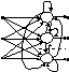 Входные сигналы не будем показывать, а покажем только обратные связи. Связи обратные являются регулярными. Эти связи показаны так: в слое из 3 нейронов каждый нейрон имеет связь с двумя какими-то другими. Обратные связи здесь задаются с помощью матрицы коммутации или матрицы соединения.