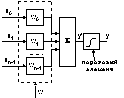 У нас имеются входы у ЛПЭ, который моделирует синоптический контакт и дендриты. Имеется умножители w0…wn-1. Моделируется внутренняя память нейрона. У нас, фактически, все нейронные сети являются нейронами сетями кратковременной памяти. Умножители, которые реализуют умножение входных сигналов на весовой коэффициент wi. w – вектор весовых коэффициентов. Сумматор моделирует тригерную зону, то есть реализуется линейная комбинация входных сигналов. Представить произвольную функцию с помощью линейной комбинации не сможем. А мы знаем, что нейрон помимо суммирования входных сигналов с учетом кратковременной памяти, он еще обладает способностью иногда эти сигналы просто не воспринимать, когда они очень часто возникают или когда возникают очень редко. Это может быть смоделировано обязательно наличием некоего нелинейного элемента – пороговый элемент. Значит любой нейрон или пороговый элемент реализует функцию: ![]()