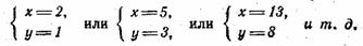 причем большее число является значением неизвестного х, а меньшее — значением неизвестного у. Например,