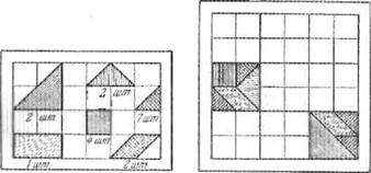 Эта игра — маленький конструктор. Двое играющих должны иметь по 18 картонных плоских фигур (см. рисунок а). Цвет фигур одного комплекта должен отличаться от цвета фигур другого комплекта.