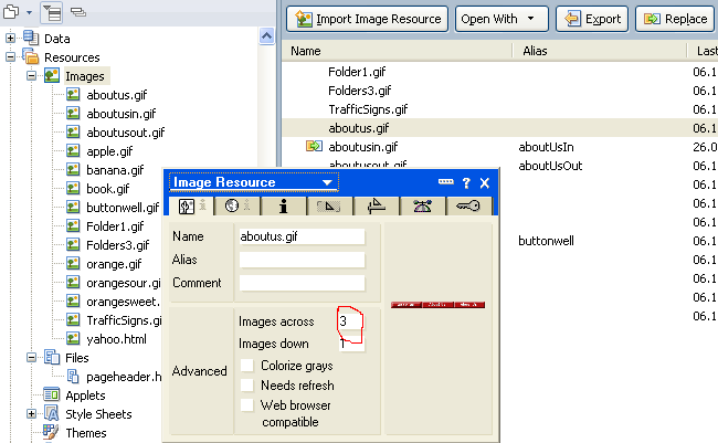 Вы можете указать, сколько изображений хранится в одном файле на закладке Advanced окна свойств ресурса.