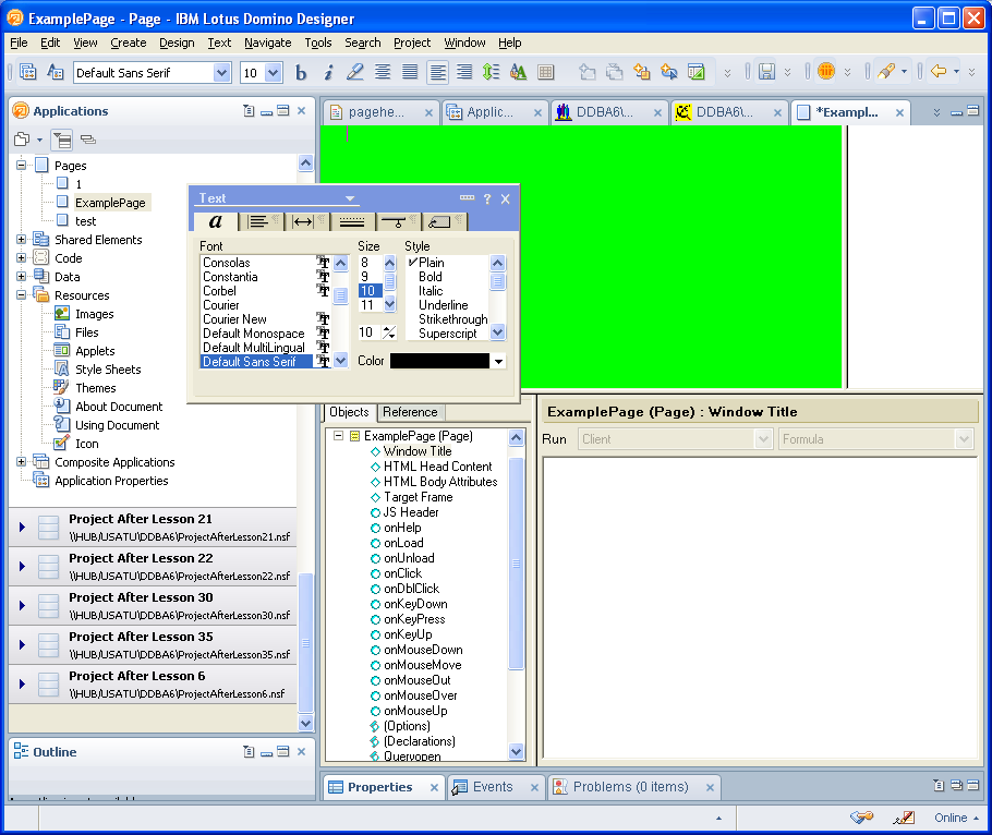 Итак, страница как компонент приложений Lotus Domino – это элемент дизайна, который похож на форму, но не может иметь поля и использоваться для хранения данных.