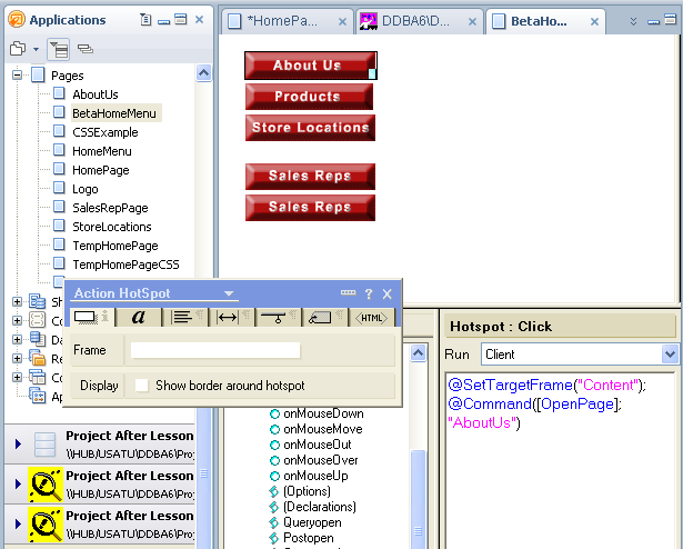 Презентация – DDBA6DEMO.nsf, страница BetaHomeMenu и страница Hotspots