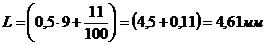 Если положить b=1 мм и m=10 делениям (что обычно и бывает), то искомая длина: