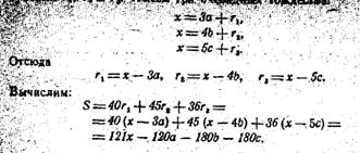 Обозначим задуманное число буквой х, частные от деления на 3, 4 и 5 соответственно буквами а, Ь и с, а остатки буквами r1, r2 и r3. Имеем три очевидных тождества: