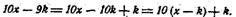 имеет к единиц, и если эти к единиц отбросить, то одновременно изменится разряд оставшихся цифр, то есть десятки станут единицами, сотни — десятками и т. д., словом, число уменьшится в 10 раз и будет равно