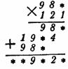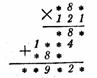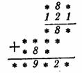 2. Так как пятая строка получается от умножения множимого на 1, то имеющаяся в пятой строке цифра 8 показывает, что вторая цифра множимого (первая строка) равна 8, а следовательно, и вторая цифра третьей строки — тоже 8 (третья строка получается от умножения первой строки на 1). Итак, имеем: