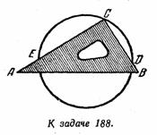Накладываем чертежный треугольник на окружность так, чтобы вершина С треугольника совместилась c какой-нибудь точкой окружности, и отмечаем точки D и Е пересечения катетов с окружностью. Отрезок DЕ будет диаметром (см. рисунок на предыдущей странице).