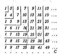 II. Запишем один под другим несколько рядов чисел: