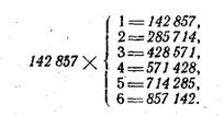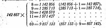 3. Продолжим наши наблюдения над произведением числа 142 857 на целые числа, следующие за числом 7 (произведение на 7 рассмотрим позже):