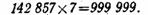 4. Произведение числа 142 857 на 7 резко отличается от остальных произведений. Оно состоит из одних девяток: