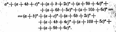 Замените буквы а, Ь и с любыми числами, а букве n придайте значения сначала 1, затем 2, 3, 4 и 5, и вы получите столько раз по 5 равных сумм, сколько захотите.