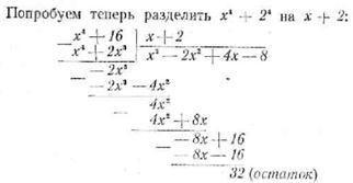 или 1—1=С. Отсюда С = 0. Оказалось, что остаток ранен нулю. Это значит, что х4— 1 делится без остатка ил х + 1. Проверьте делением!