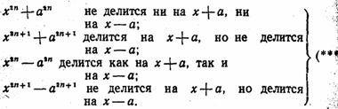 , m– целое положительное число) делятся на сумму и разность их оснований (х+а и х—а).