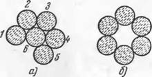 Возьмите шесть равных дисков и уложите их плотно, как показано на рисунке а. Надо в 4 хода расположить их кольцом (см. рис. б). «Ход» состоит в следующем: прижимая какие-либо 5 дисков к столу, надо перекатить шестой диск в новое положение, не отрывая его от остальных дисков, причем в новом положении он должен соприкасаться не менее чем с двумя дисками. Решить эту головоломку именно в 4 хода не так просто, как может показаться с первого взгляда. В качестве дисков возьмите, например, 6 одинаковых монет или вырежьте из картона 6 одинаковых кружков.