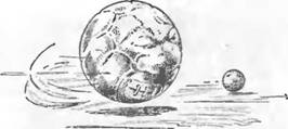 Вдруг вратарь стал уменьшаться, уменьшаться и наконец, превратился в маленький целлулоидный мячик для настольного тенниса, а футбольный мяч оказался чугунным шаром. Шар бешено кружился по гладкому полу комнаты, стремясь раздавить маленький целлулоидный мячик. Бедный мячик в отчаянии метался из стороны в сторону, выбиваясь из сил и не имея возможности подпрыгнуть.