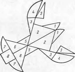 36. Фигурный рак 20 Дек, 2009 admin 20 декабря 2009 Глава 1. Раздел 1. Затейные задачи Фигурный рак, изображенный на рисунке к этой задаче, сложен из 17 кусочков. Как сложить из кусочков этого рака две фигуры Из кусочков «рака» выложите круг и квадрат.