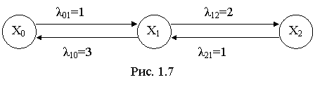 Марковская непрерывная цепь называется “процессом гибели и размножения”, если граф состояний имеет вид, представленный на рис. 1.6, т.е. все состояния можно вытянуть в одну цепочку, в которой каждое из средних состояний связано прямой и обратной связью с каждым из соседних состояний, а крайнее состояние только с одним соседним состоянием.