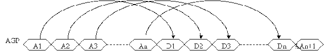 Пример конвейеризации обращений к памяти показан на рис. 13, где сравниваются обращения к памяти PCI и AGP. В PCI во время реакции памяти на запрос шина простаивает, но не свободна. Конвейерный доступ AGP позволяет в это время передавать следующие запросы, а потом получить поток ответов.